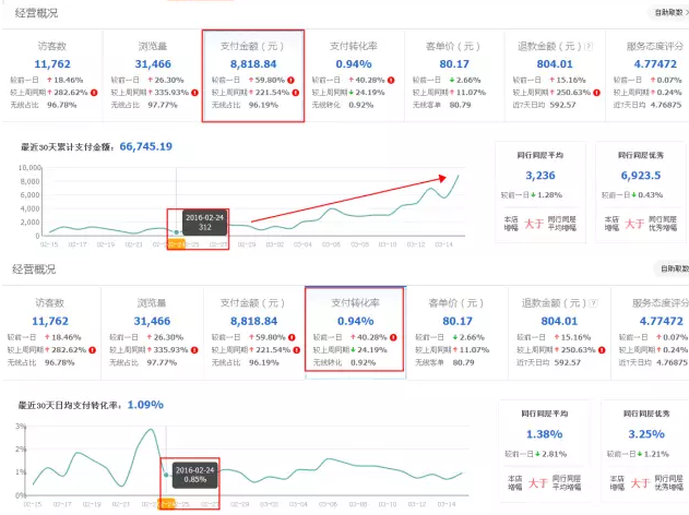 以上是店铺的访客数、销量和转化率的数据,刚接手的时候店铺基本上流访客数和销量是比较低的,而且转化率也是一直偏低。接手后店铺的流量和销量是在急速上升,转化率是比较平稳。
