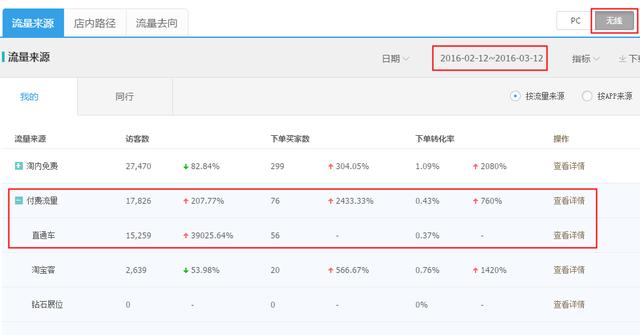 在刚开始推广直通车的时候,店铺的付费流量是占比高达70%,而且大部分的流量都来自直通车;在推广了一段时间直通车之后,经过直通车的带动作用和店铺的优化,店铺的自然流量开始慢慢的上涨,而且占比差不多达到70%。
